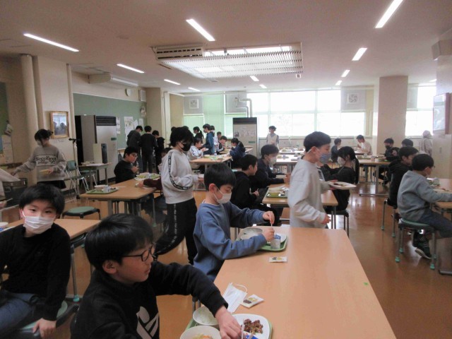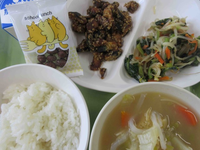 今日の給食は節分献立。鬼を払い福を招き入れるといわれる豆と鰯が使われています。