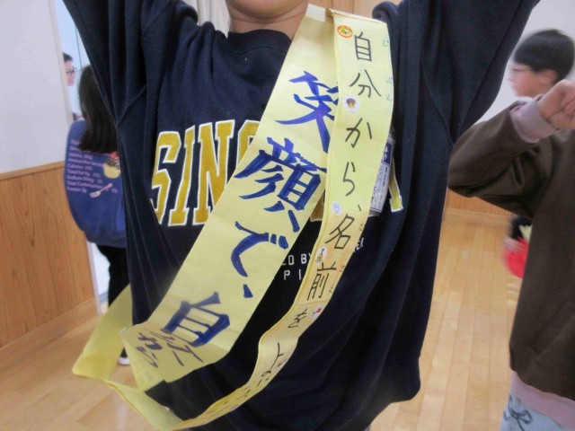 5年生あいさつ運動スタート 公開日 2026/02/06 更新日 2026/02/06 学校日記 3年生から受け継いだたすきを裏返し、改めて自分たちのあいさつ目標を書き込みました。このたすきを掛けて、5年生のあいさつ運動がスタートしました。