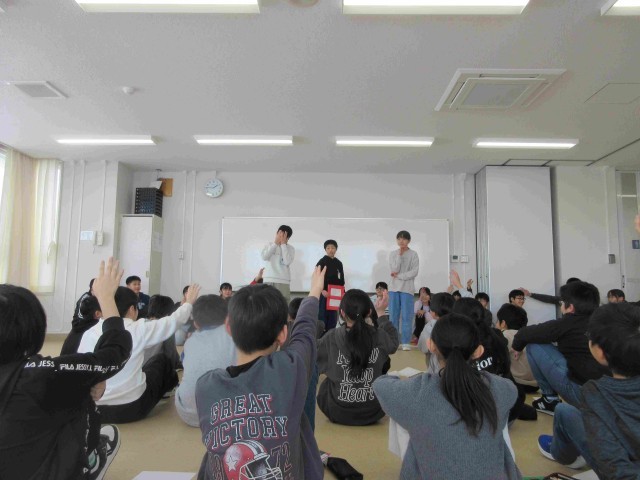 6年生が、後を引き継ぐ4,5年生に委員会の仕事内容を説明しました。(20分休み集まっていたのはこれのリハーサルだったのですね。)