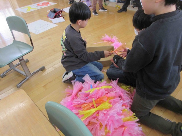 画像は3年生教室での様子。いろいろなパーツが同時進行で準備されています。
