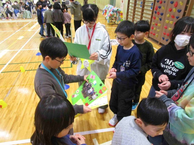 3・4枚め;スマイル班の6年生に写真とメッセージのプレゼント。5年生がきれいに飾り付けをしてくれました。