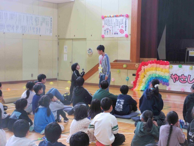 1・2枚め;5年生はクイズや劇で6年生との思い出を語りました。突然インタビューも始まります。一緒に行動することが多かっただけに掘り下げ方が深い。最高学年のバトンを受け継ぐ決意も示してくれました。