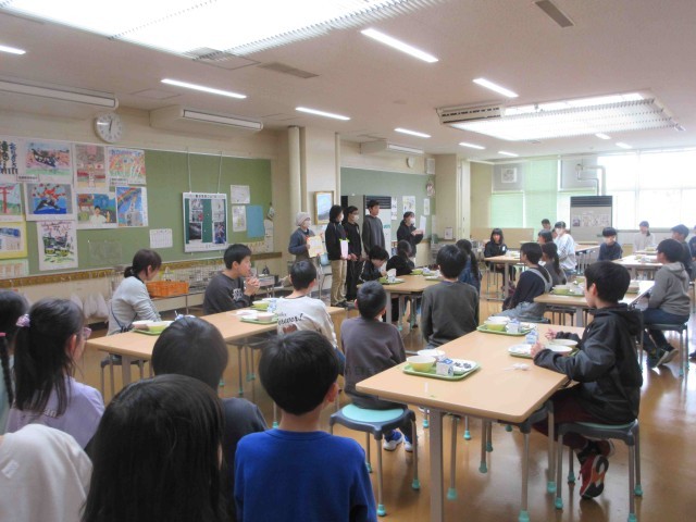 それらの方を代表して、西部学校給食センターの栄養教諭と学校側で配膳の準備をしてくださる管理員のお二人に感謝のメッセージを渡しました。