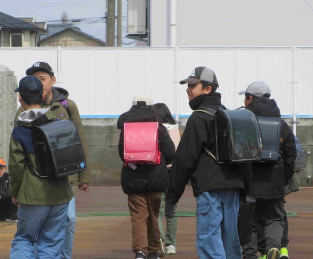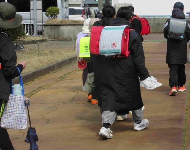4,5年生には卒業式前日準備をお願いしていますので今日は1、2、3、6年生での下校となります。