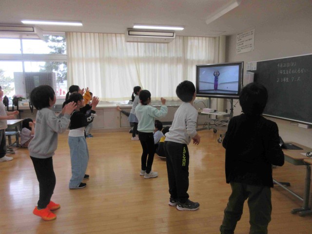 2年生では早くも1年生を迎える会の準備ははじまりました。1年生に披露するダンスの練習です。