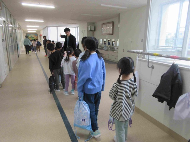 1時間めは発育測定。2年生と一緒に更衣室に行き、体育着に着替えました。