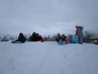 1年生に続いて、27日には2年生がそり遊びをしました。2日めともなると築山の雪は...