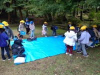 1,2年生が弥彦公園に行ってきました。ますはブルーシートでベースキャンプを作って...