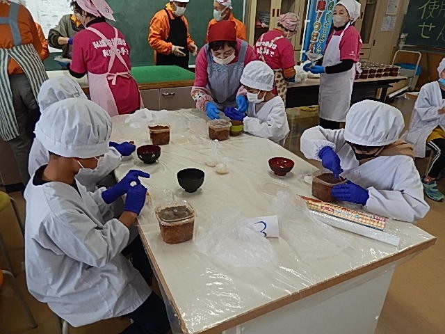 12月4日(木)、3年生が味噌収穫祭を行いました。食生活改善推進委員の皆様、ボランティアの皆様にこれまでの学びを発表し、2年間仕込んできた味噌を収穫しました。