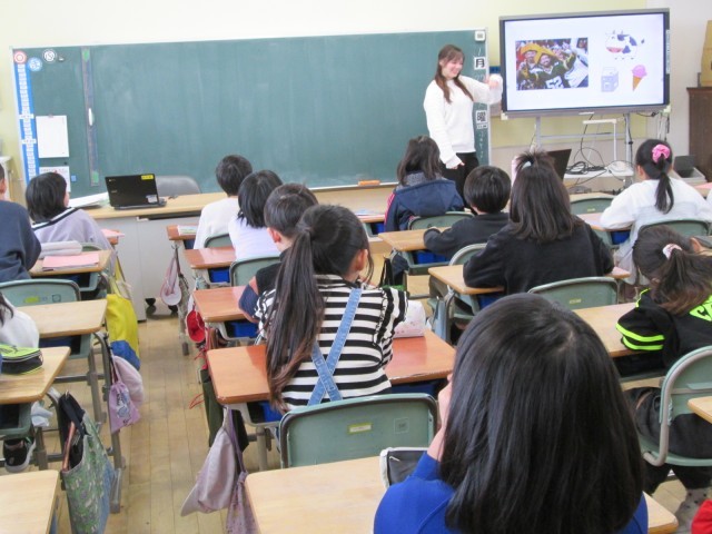 ALTのアビゲイル先生が来校され、1~6年生学級で英語を教えてくださいました。たくさんの写真や絵を見せながら、分かりやすく英語を教えてくださいました。6年生の子どもたちから声を掛けられ、給食も子どもたちと一緒に食べてくださいました。アビゲイル先生は、アメリカ出身の先生です。