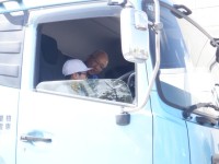3~6年生の子どもたちが一人一人ダンプの運転席に乗せていただき、運転席から見える場所、見えない場所を実際に体験しました。ダンプのすぐ前に立っている友達の姿は、運転席から全く見えなくなってしまうことや、ミラーを使っても後ろや両脇にはかなりの死角があることを知り、動いているダンプに近づくことの危険を体感しました。誰一人交通事故に合わないために、自分の命を守る方法を真剣に学びました。