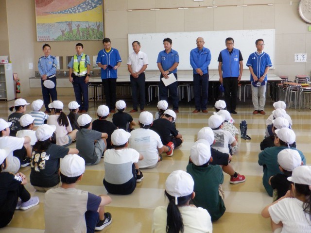 3~6年生の子どもたちが一人一人ダンプの運転席に乗せていただき、運転席から見える場所、見えない場所を実際に体験しました。ダンプのすぐ前に立っている友達の姿は、運転席から全く見えなくなってしまうことや、ミラーを使っても後ろや両脇にはかなりの死角があることを知り、動いているダンプに近づくことの危険を体感しました。誰一人交通事故に合わないために、自分の命を守る方法を真剣に学びました。