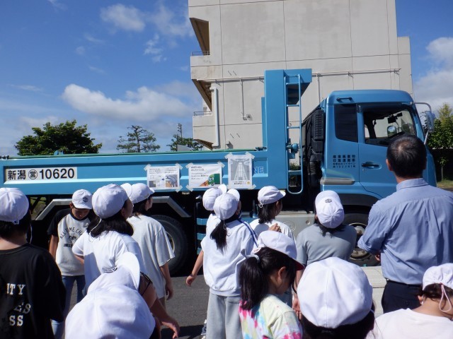 分水ロータリークラブ様の企画、燕警察署様、(有)Vライン様のご協力で、「ドキドキトラック交通安全教室」を実施しました。