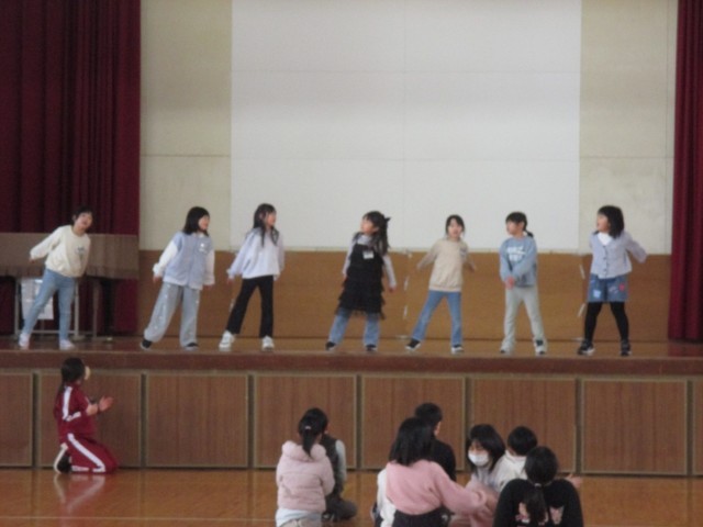 かるたとり、ダンス、バスケのシュート、音楽の発表などバラエティーに富んだ発表でした。