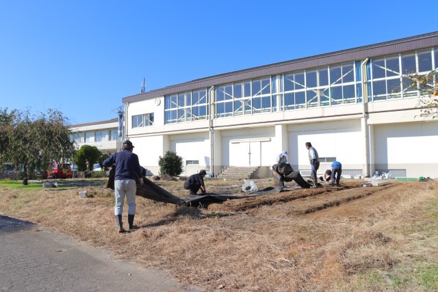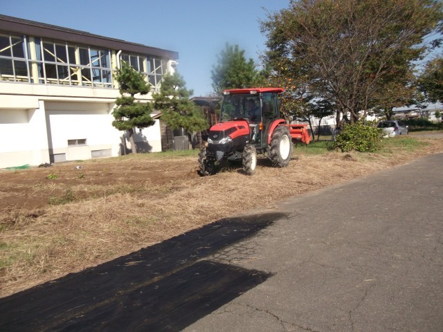 今日はボランティアの方が大勢来てくださり、畑のマルチを片づけたり、耕してくれたりしました。