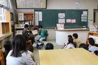 18日(金)に5年生が総合で春から取り組んだ米作りについて、お世話になったJAの方や田んぼを貸してくださった方をお招きして、収穫祭が行われました。