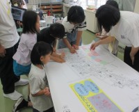 保護者と一緒に登校し、地域の危険個所を探しました。その後、地域ごとに分かれて探し...