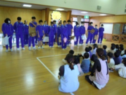 3年生の家庭科において保育実習を行っています。3年生の各クラスで保育園を訪問し、幼児との触れ合い体験を通し、幼児への理解を深めています。また、各自が思考を凝らして制作したおもちゃと一緒に幼児と楽しそうに過ごす姿が印象的でした。