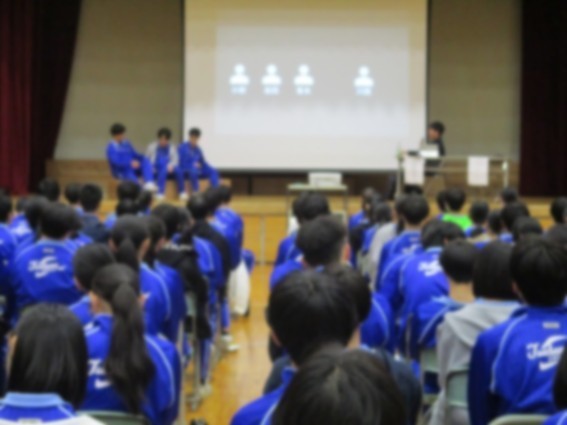 10月31日(金)3年生がキャリア教育の一環として、職業講話がありました。講師の方から、「働くこと」について多角的な視点から講話をしていただきました。生徒はしっかりと話を聞き、質問をするなど意欲的に参加していました。