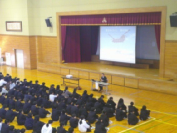 第3テスト終了後、水害を想定した避難訓練を実施しました。校舎内への浸水を想定し、3階への垂直避難を訓練しました。避難訓練後は、燕市の危機管理監の方から河川氾濫における安全な避難についての講話をしていただきました。