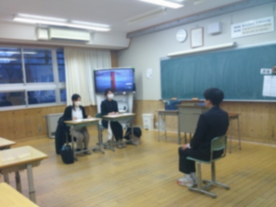 1月13日(火)高校入試に向けた面接指導を、外部指導者の方にしていただきました。生徒たちは直前に控えた入試に向けて、緊張感をもって取り組んでいました。本日は個人面接を中心に、明日14日(水)は集団面接を行います。