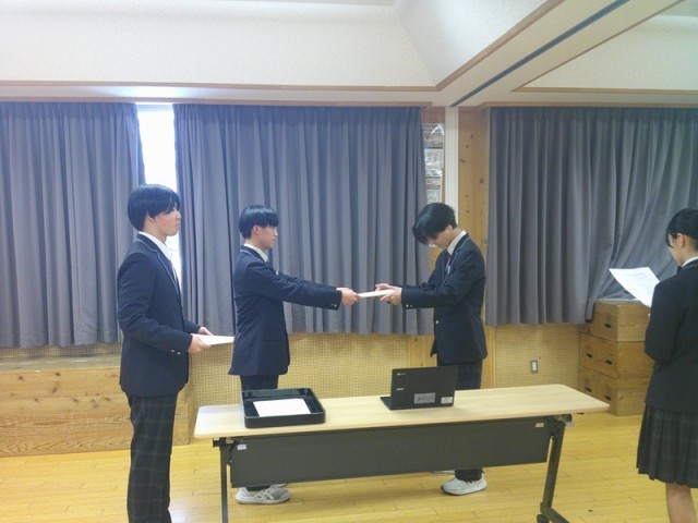 生徒総会後には新委員長の任命式があり、生徒会長から一人一人に任命書が手渡されました。