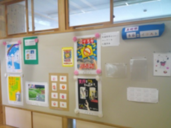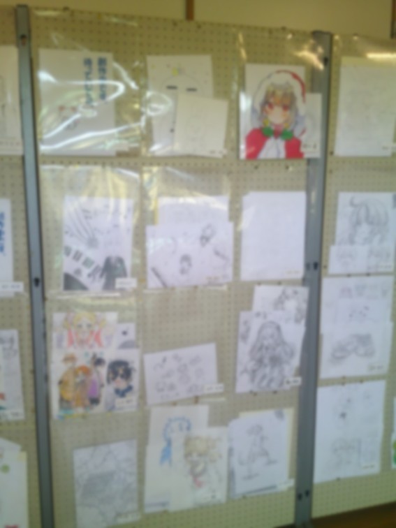 2階の多目的教室1前の廊下と、美術室前の廊下掲示板には、美術部の作品展示コーナーがあります。個人制作のイラストや、各種コンクールで入賞(特選など)したポスターが掲示されています。さらに、イラスト集の作成などにも取り組むなど、精力的に活動しています。