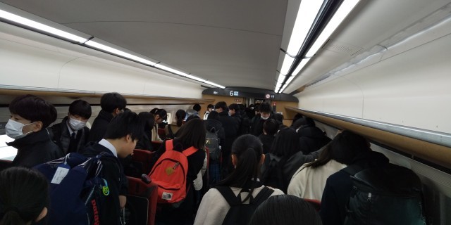 新幹線から見える景色にみんな興奮していました。上野駅を通過して降車の準備をしてま...