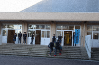 今朝は晴天の中、初めてグラウンドで体育祭練習を行いました。最初に男子種目「棒とり」です。両サイドの自陣地から、中央に並べられた棒を取りにダッシュします。そして、掴んだ棒を自陣地に運びます。途中、互いに棒を引き合いながら時間内に棒を自分の陣地に運んだ数で争います。朝から男子は元気に行っていました。次に女子種目「綱引き」、校長が出張のため写真はありませんが、こちらも力強い戦いとなるでしょう。2時間目は応援練習を広いスペースのグラウンドで行います。今日はさわやかな天気、気温で生徒も職員も笑顔がたくさん見えました。