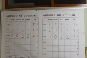 27(土)の体育祭に向けて今週が始まりました。いつもどおり、朝の挨拶運動を行っています。少し、肌寒い感じもしますが、今週は天気も良くなりそうです。健康に気を付けて体育祭を迎えくれることを願っています。先日、実行委員の皆さんが作っていた体育祭スローガンが掲示されていました(写真2枚目)。先週からの全体練習のチェック表です(写真3枚目)。今日は6時間目に全体応援練習を行います。