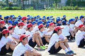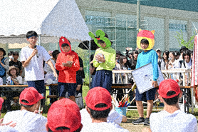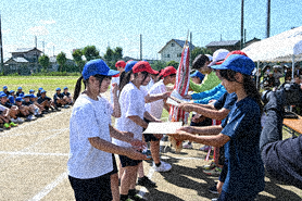 最後は閉会式の様子です。ゲストが登場しました(写真2枚目)。結果発表を工夫して行っていました(写真3枚目)。表彰(写真4枚目)。閉会の挨拶(写真5枚目)。閉会宣言(写真6枚目)。今年度は長寿命化改良工事もあり準備活動も例年と同じようにはできませんでしたが、体育祭スローガンの副題、今しかできない青春をを大切に、一場面一場面を大切にした全校生徒の姿が見られました。自軍だけでなく相手を応援する姿やゴール後に互いをたたえあう姿もあり、感激する場面をたくさん見ることができました。皆さんはすごいです。全校生徒の皆さん、大変お疲れさまでした。