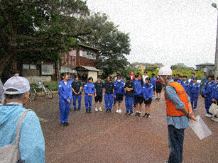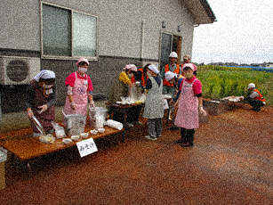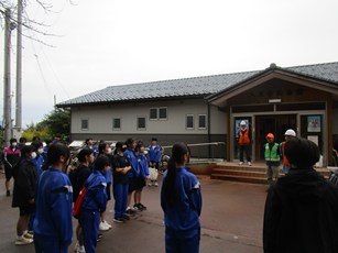 八王寺公会堂でも同じく炊き出し訓練が行われており、多くの中学生が避難していました(写真1枚目)。代表の方からお話をいただき(写真2枚目)、中学生がお礼の言葉を述べました(写真3枚目)。八王寺の生徒たちもこの後、小池小に向かいました。
