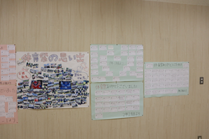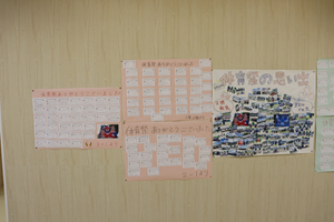 今週は来週の合唱祭に向けたクラス団結の週になります。朝、教室を回ると1学年の合唱実行委員が打合せを行っていました。「昨年の1年生の・・・」というような話が聞こえてきました。昨年の映像でも見るのでしょうか。廊下には体育祭の振り返りメッセージが掲示されていました。