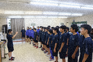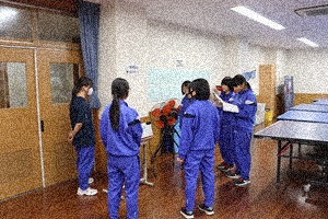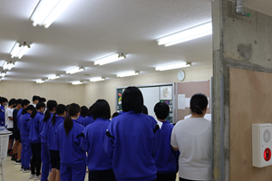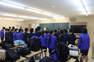 放課後練習は前半パートごとに音を確認し、後半は全体で合わせ、リーダーが改善点などを述べていました。残り一週間、どこまで仕上がるか楽しみです。寒くなってきましたので、風邪を予防もお願いします。仮設教室は意外と暖かいようです。放課後、校長室は19℃ですが、1年生教室は23,4度ありました。