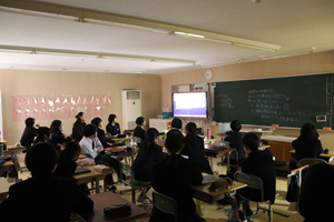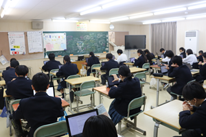 1限は全校で昨日の合唱祭の振り返りを行いました。順番はそれぞれのクラスで違いますが、リーダーが振り返りをクラスに述べたり(写真1枚目、7枚目)、担任が合唱祭を振り返って話をしたり(写真2・3枚目)chromebookで振り返りをしたり(写真4枚目)、昨日の合唱のビデオを視聴したり(写真5枚目)、振り返り用紙・メッセージの記入をしたり(写真6枚目)、合唱期間の振り返りを行いました。昨日の余韻が残る教室もありました(写真8枚目)。