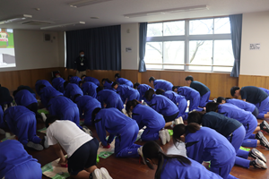 5限に2年生が、新潟PUSHプロジェクトの講師の方より心肺蘇生法実習を受けました。簡易キットを使って胸骨圧迫、AED使用について学びました。ペア活動では、長い時間、止めずに胸骨圧迫を続けるために、途中でうまく交代しながらの実習も行いました。いざというときのために大切な講習会でした、2年生の皆さんお疲れさまでした。