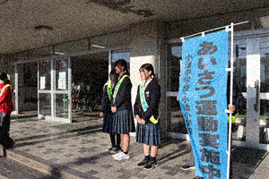 2日目の合同あいさつ運動です。写真は小池小学校の様子です。最後は、小学生と中学生から一人ずつ感想を言いました。