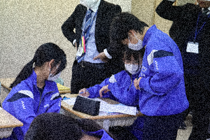市内の数学科の先生方が、1年1組の授業を参観しました。約20名の先生方の中で「平面図形」の学習を行いました。課題は「平行線はどのように作図することができるか」でした。小池中学校周辺に埋められた「宝」のありかを最終的には平行線を利用して探しました。個人で考え、途中、互いに教え合いながら学んでいました。最初、「宝」ということで盛り上がる場面もありましたが、シーンと集中して学習に取り組む姿があり、メリハリのある集団に育っている様子も先生方に見ていただきました。1年1組の皆さんお疲れさまでした。