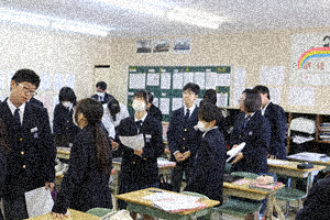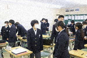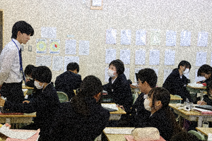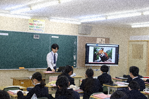 1年2組で英語の研究授業を行いました。最初に、授業者の友人からのミッションVTRで課題が示されました。単元の最後には、自分が考えた理想の動物園を紹介します。今日はその一時間目で、「There is(are)~を使って、身の周りの施設についてペアに説明することができる」ことをねらいとしました。自分の家の近くの施設を様々な英文を使って紹介しました。個人で考えてきたものをペアに伝えました。どうやったら分かりやすく伝えることができるかペアで考えました。1年2組の皆さん活発なコミュニケーション活動お疲れさまでした。
