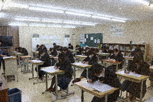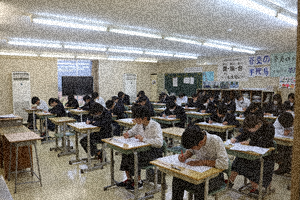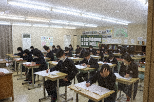 定期テスト2日目が始まりました(写真1、2枚目:3年生、写真3、4枚目:2年生、写真5、6枚目:1年生)。今日は朝から2教科を受検し、3限、4限と授業を行います。朝から大雨で登校が大変そうでしたが、頑張っていきましょう。