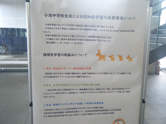 燕市役所エントランスで、先日3年生が行った福祉学習の発表資料が、今月28日(金)まで展示してあります。3年間の学習の集大成のまとめになります。