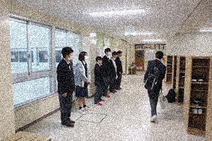 昨日の晴天から一転、雨の週末の始まりです。今日も2年生の立候補者が元気よくあいさつ運動を行っています。学校に活力をありがとうございます。立候補者は5人でローテーションを組んで行っているそうです。仮設教室で行っている人もいます。