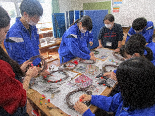 27日(木)の昼休みに相談員より、クリスマスリースづくりを開催してもらいました。約12,3名の生徒職員が参加し、クリスマスリースを作りました。さつまいものつるをベースに素敵なリースがたくさんできました。素敵な計画ありがとうございました。