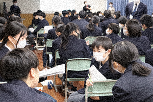 27日(木)の午後から、白ふじの里、桜井の里福祉会の皆様より「認知症サポーター養成講座」を行っていただきました。当日は「認知症を正しく知って、困っている人をやさしく助けられるようになること」を目的に行われました。まず、燕市の現状を知り、認知症の方との接し方やサポーターとしてできることについて、実演を交えて学びました。中学生でもできる合言葉「①ゆっくり(話す・動く・伝える)、②あんしん(責めない・否定しない)、つなぐ(ひとりで抱えず、大人へ)」を教えていただきました。大切なことは普段の生活でも大切にしている「相手を尊重する」「困っている人をほっておかない」だと伝えていただきました。最後に学年の代表生徒よりお礼の言葉を述べさせていただきました。社会福祉法人の皆様ありがとうございました。学習は2年生、3年生と続きます、今後ともよろしくお願いいたします。