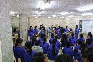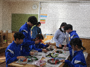 今日の昼休みは両方とも2回目の演奏会とリースづくりを行っていました。演奏会では管楽打楽器八重奏のグループが約30名の生徒へ演奏を披露しました。今週土曜日のアンサンブルコンテストで発表する曲です。木工室ではリースづくりを行っており、前回よりもまた人数も増えたそうです。生徒たちの明るい表情が印象的でした。