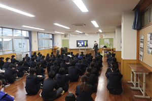 3学年朝会では、学年主任(進路指導主事)より、今後の進路選択や具体的な出願手続きについてガイダンスを行いました。8日(月)は、私立併願や私立各コース(クラス)への出願が可能かどうか、生徒へ伝えます。その後、各家庭でウェブ出願をしていただきます。学校によって少しやり方が違うところもありますが、今日のプレゼンの中で説明しましたのでお子さんにご確認ください。また、来週9日(火)には学年全体で面接練習も行います。制服に着替え、気持ちを入れ、練習を行います。受検する学校で面接がない人もいますが、将来、就職やアルバイトでも面接する機会はあるかと思います。気心知れた仲間との面接で、自分の人となりがアピールできるかお互いに確認しながら、取り組んでほしいと思います。