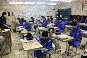 2年2組で音楽の研究授業を行いました。貴族社会で盛んに演奏された雅楽を題材に当時の音楽の良さや、合奏をとおして感じたことをまとめていきました。合奏体験では鉦鼓の音と似た音が机の周りでないか探し、机の脚に近い音があることが分かりました。座禅を組んで声を出す人と下で音を鳴らす人に分かれ合奏を行いました。お互いに感想を言い合った後、雅楽が盛んに演奏された音楽的根拠と歴史的根拠について調べていました。