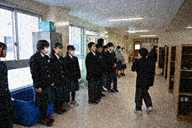 26日(月)は1年1組(写真1枚目)、27日(火)は1年2組(写真2枚目)があいさつ運動の当番でした。道路が凍結で登校が、大変な中でしたが盛り上げてくれて、ありがとうございます。