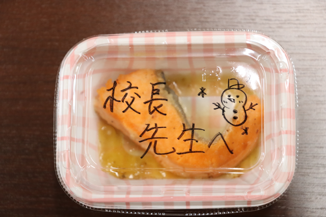 2年生のもう一クラスからも「鮭のムニエル」をいただきました。今回も残念ながら、様子を見に行くことができませんでした。やわらかく、味もしみていて、給食のご飯でおいしくいただきました。皮までしっかりと食べました。ごちそうさまでした。