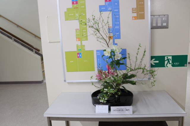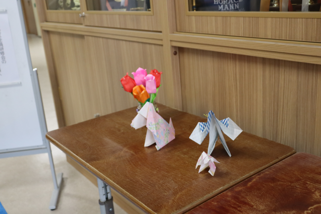 今日は午後から中学校区の小中学校の先生方が小池中に集まり研修会を行います。3年生男子体育卓球の後片付けの際に会場の準備をしてくれました。また、生徒が折り紙で飾りを作ってくれました。職員玄関に飾りました。そして、定期的に新しい花をボランティアの方が活けてくれています。皆さんありがとうございます。